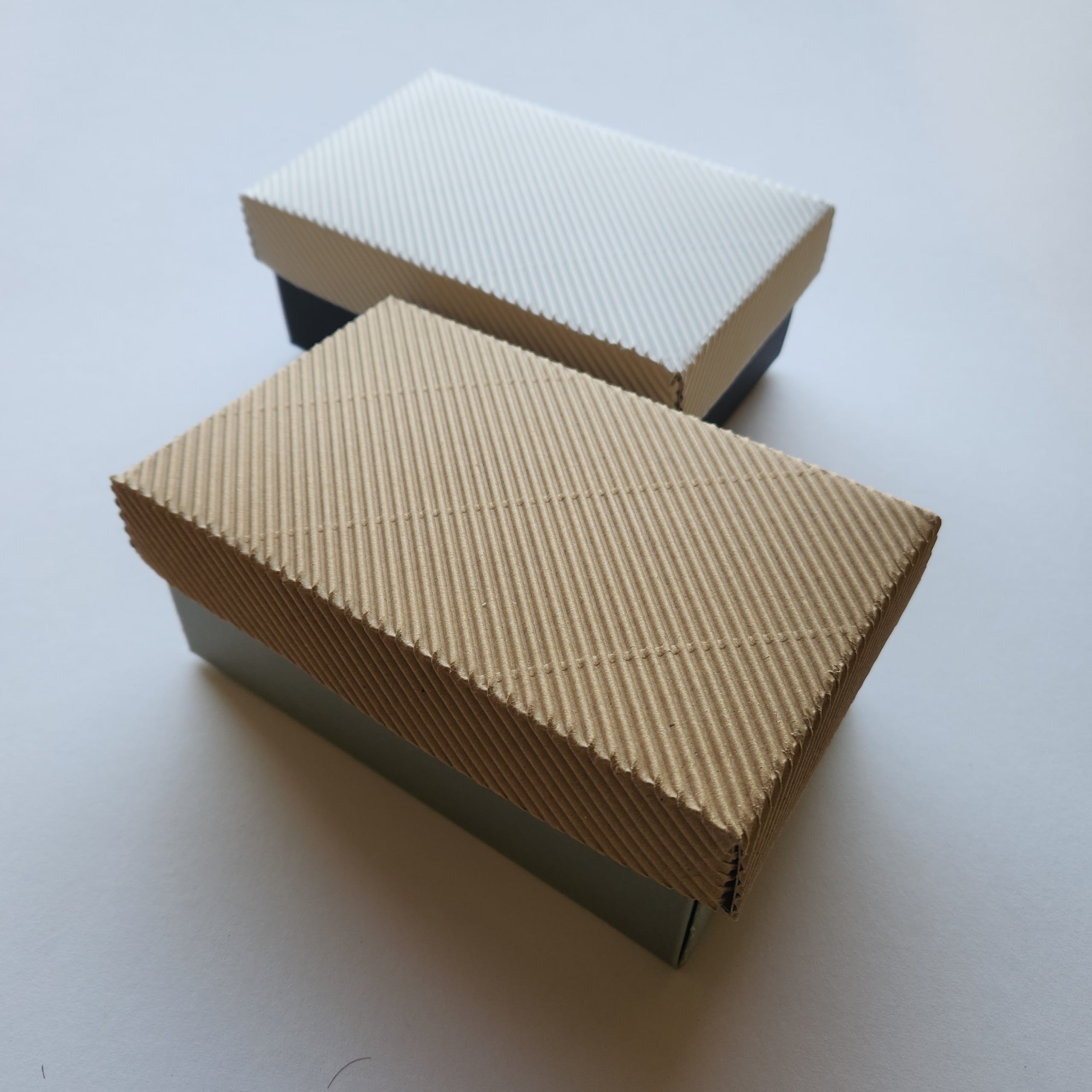 芯材(厚紙)を組み立て、紙を“貼って”仕上げる職人技のつまった箱なんです!