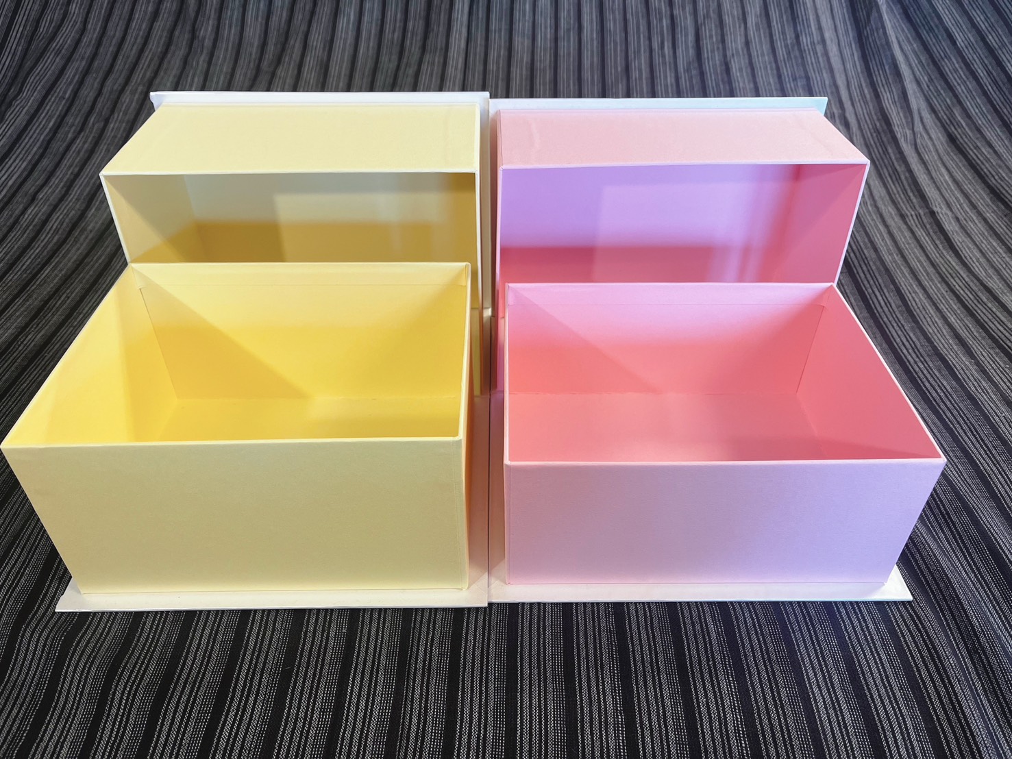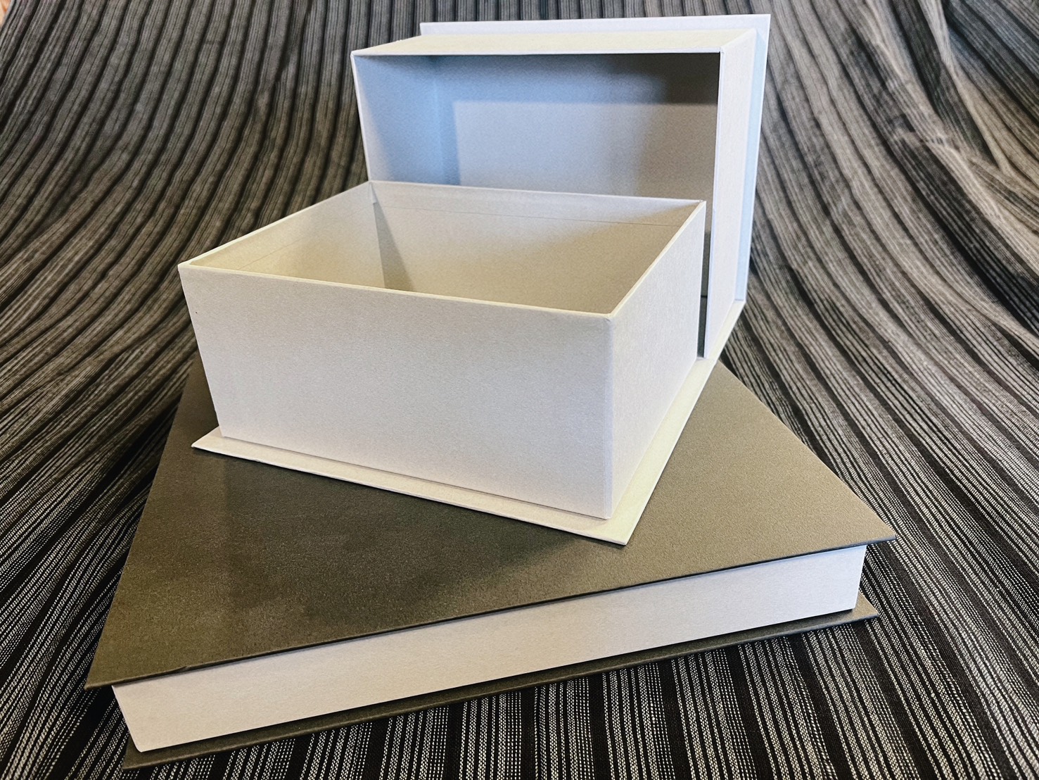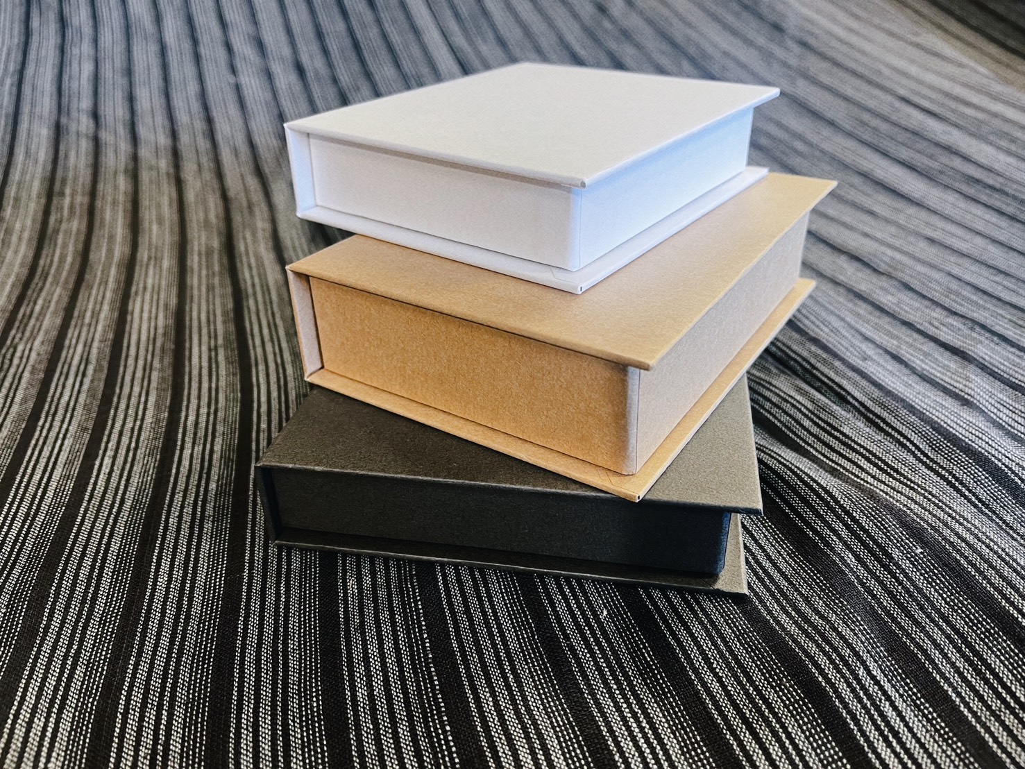 その一方で、構造が複雑になりやすく、コストや仕様の詰め方には注意が必要です。貼り箱ブック式は、何にでも使いやすい万能型というより、「見せ方を重視したい商品」に強い形式と整理すると分かりやすいです。高級感、演出性、再利用性を重視するなら、ブック式は非常に相性の良い貼り箱のひとつです。