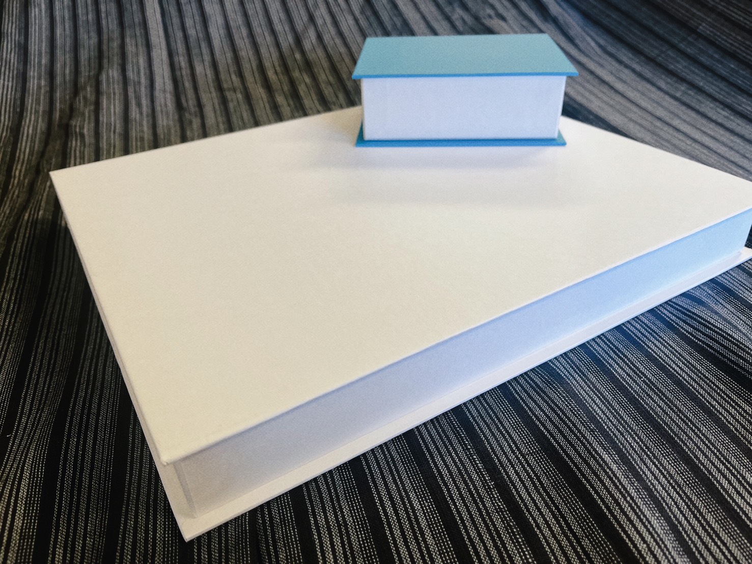 次に、デザインの自由度が高いことも長所です。天面だけでなく、背表紙や内側、見返しまで含めて設計できるため、印刷や箔押しの見せ場を作りやすいです。とくに背表紙を活かせる点は、フタミ式や単純なかぶせ式にはないブック式らしい魅力です。ブランド名やシリーズ名を背に入れると、収納時にも識別しやすくなります。